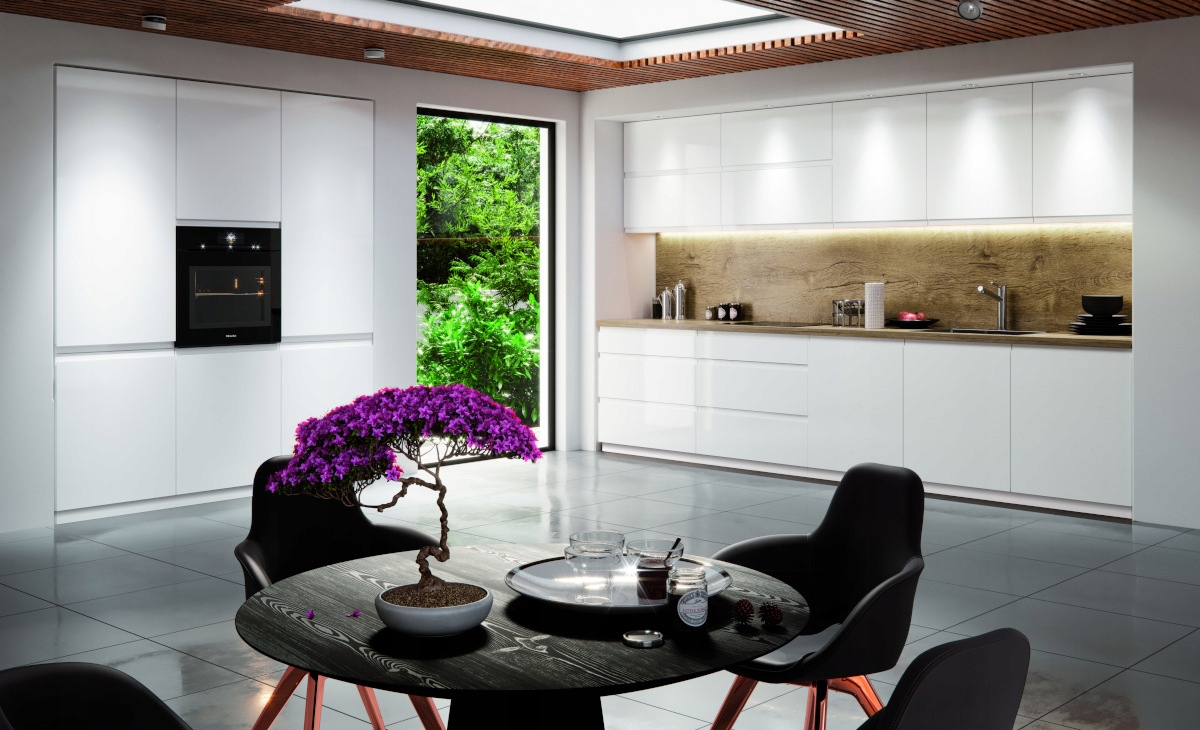 Кухонний оспен характеризується білими або сірими фронтами від MDF до високого блиску та замерзаючою системою.