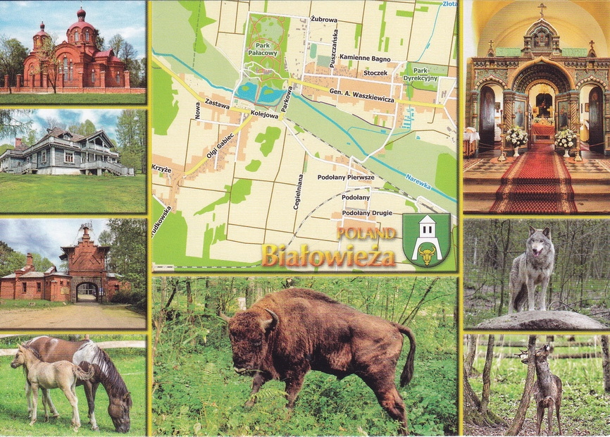 BIAŁOWIEŻA - CERKIEW - IKONOSTAS - BRAMA CARSKA - ŻUBR - MAPKA - HERB