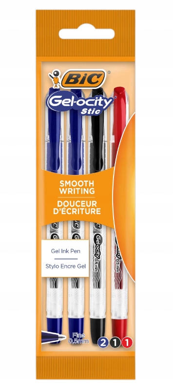 - 4x Гелева ручка BIC Gel-ocity STIC (червоний, чорний, синій)