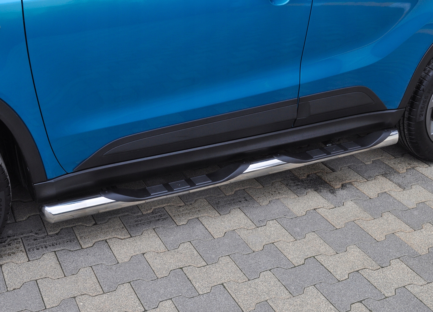 Бічні труби з нержавіючої сталі. Має виїмки, заповнені АБС-пластиком. Полірована обробка труби діаметром 80мм.
