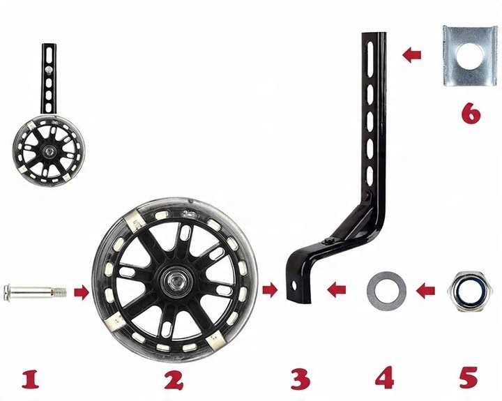 СВІТЛОВІ БОКОВІ КОЛЕСА ВЕЛОСИПЕДА + НАПРАВЛЯЮЧА ДЛЯ НАЖУВАННЯ