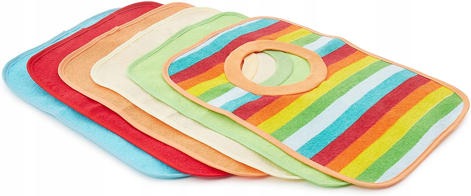 Представляємо набір з 6 різнокольорових нагрудників торгової марки Bieco. Вони виготовлені з 75% бавовни, 25% поліестеру. Ці нагрудники особливо підходять для немовлят, які їдять самостійно, насправді вони достатньо великі, щоб добре покривати одяг і не дати їм занадто забруднитися під час їжі. Також ідеально підходить для дитячого садка та вдома.