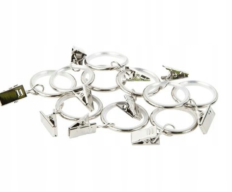 Карниз FUSION, кільце жабо, ефект сталі 10 шт. Набір з 10 кілець металевих з жабкою, призначених для прутків діаметром 16 мм і 19 мм. Кільця з жабо дозволяють кріпити штори або портьєри на карниз. Колеса оснащені силіконовою вставкою, яка забезпечує безшумне і легке переміщення тканин. Кільця сталевого ефектного кольору.