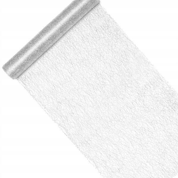 БІГУНОК ДЛЯ СТОЛУ FIBRA СІТКА ДЕКОРАТИВНА СРІБНА НА ВЕСІЛЛЯ ПРИЧАСТЯ 0,36х9м
