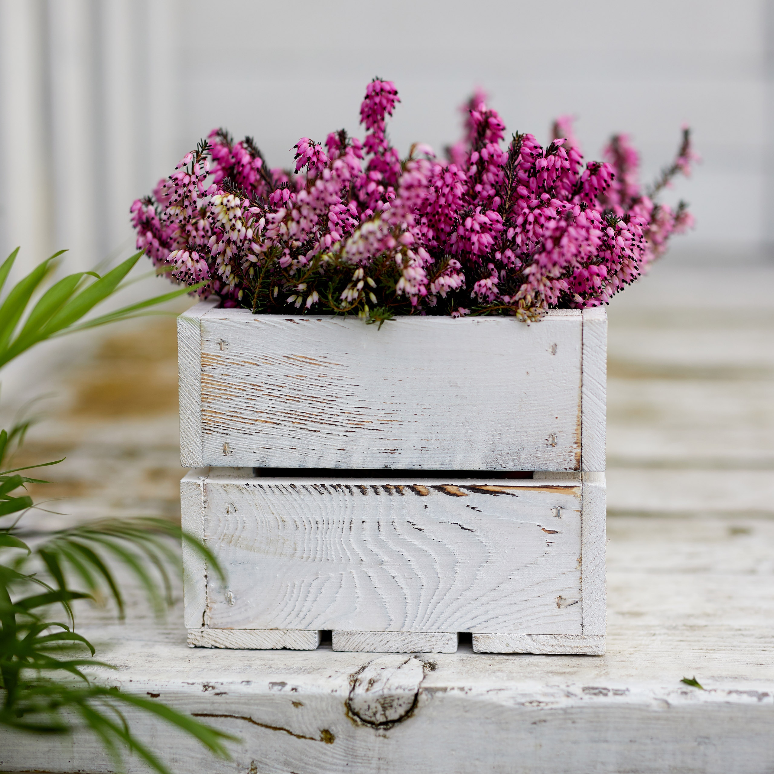 Біла коробка, дерев'яний горщик, вересовий кожух