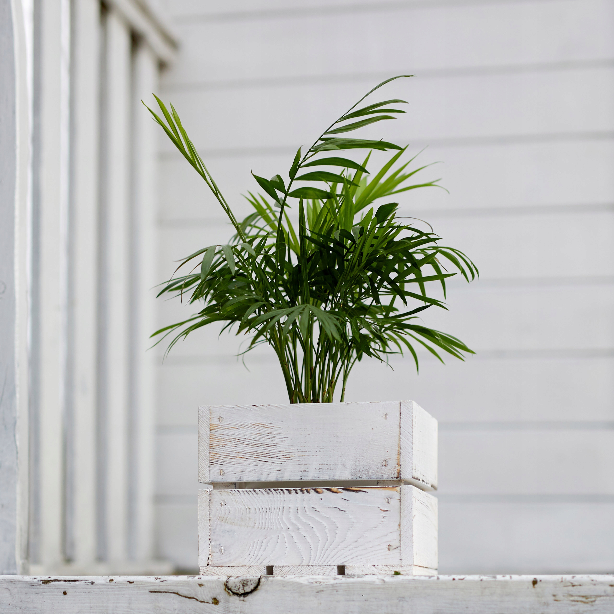 Ящик виготовлений з натуральної висушеної деревини спеціально відібраних хвойних порід дерев. Крім того, він пофарбований у білий колір із сільськими потертостями. Білий колір фантастично підкреслить зелень листя та барви квітів.