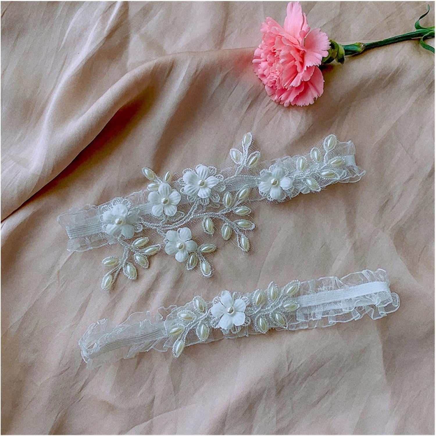 Фантастична весільна підв'язка з мереживом, прикрашеною перлами.