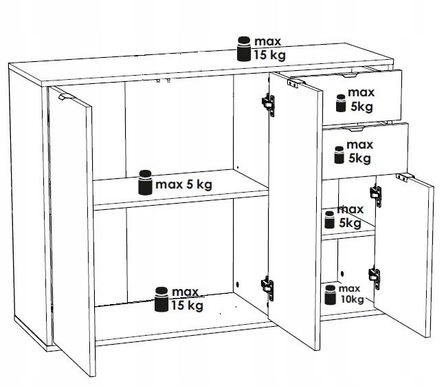 Комод 3D2 sz з 3 дверцятами та 2 шухлядами надзвичайно практичний.