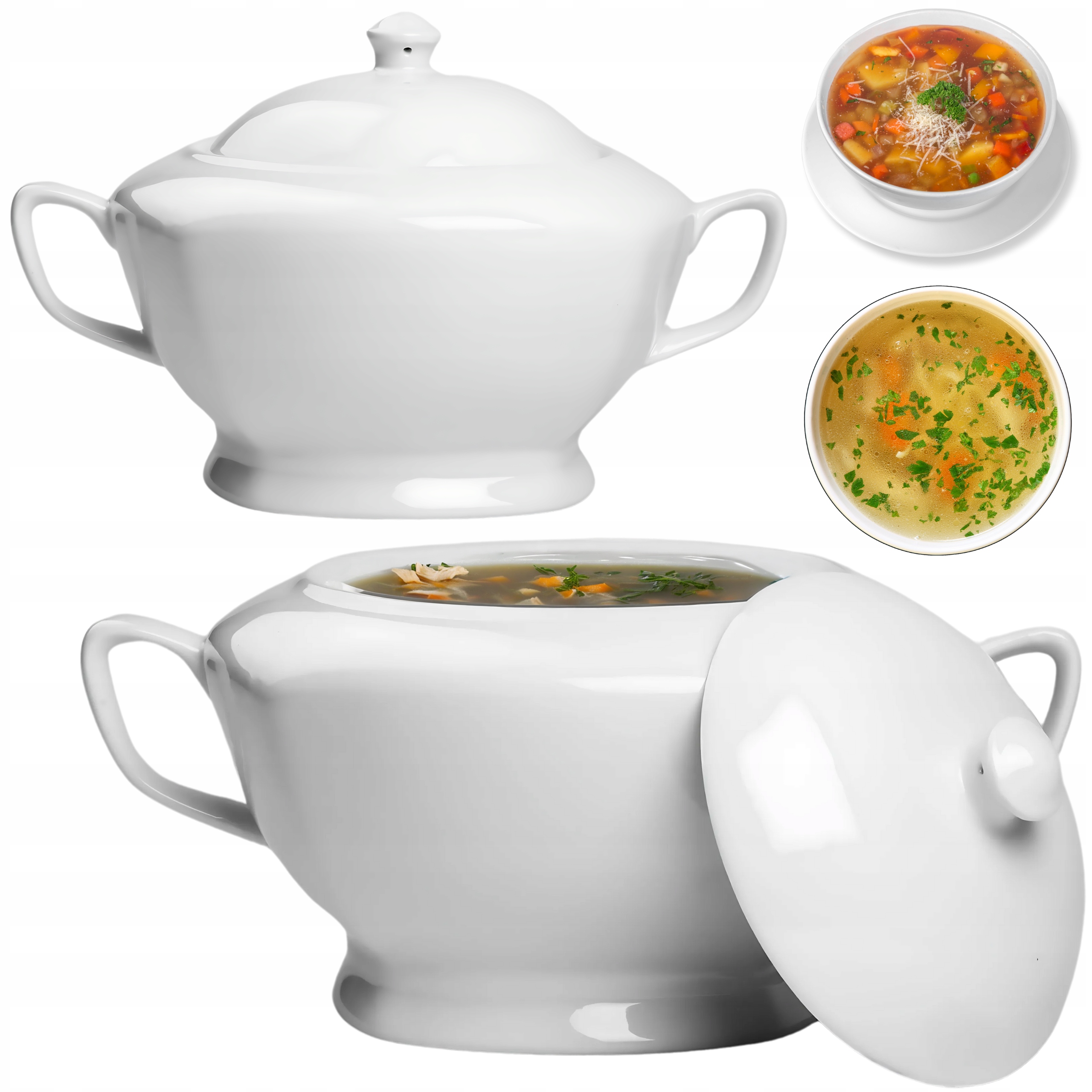 Шукаєте елегантну та функціональну супницю, яка прикрасить ваш стіл? Біла супниця об'ємом 2,8 л - ідеальне рішення для будь-яких сімейних зустрічей, урочистості та щоденні трапези. Виготовлений з порцеляни 2-го сорту, він поєднує класичний дизайнз високою функціональністю, пропонуючи зручну подачу супівтаких як b>бульйон, борщчи крем.