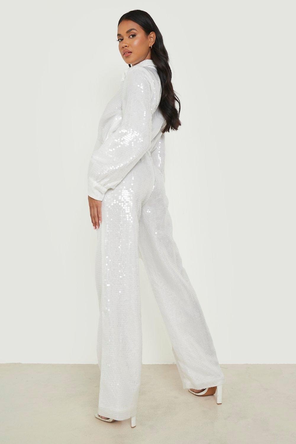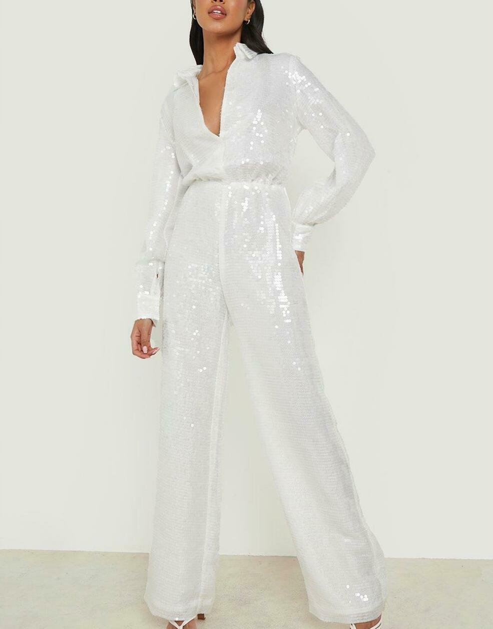 БІЛІ ПАЙЄТКИ JUMPAL V-ПОДОБРИЙ КОМІР ПРЯМІ НОГИ BOOHOO 40