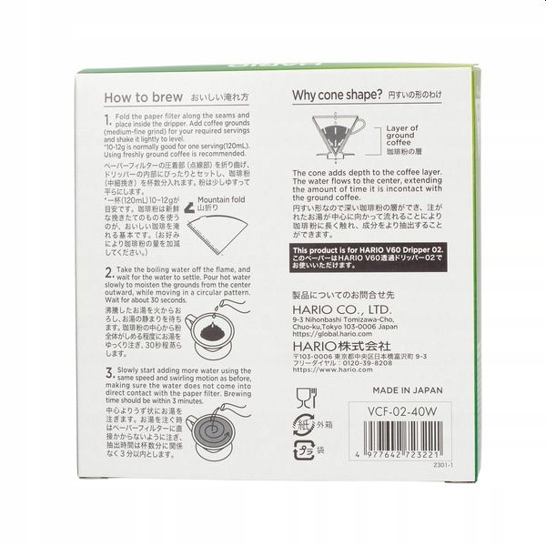 40 штук фільтрів Hario, призначені для конічних кавових крапельниць.