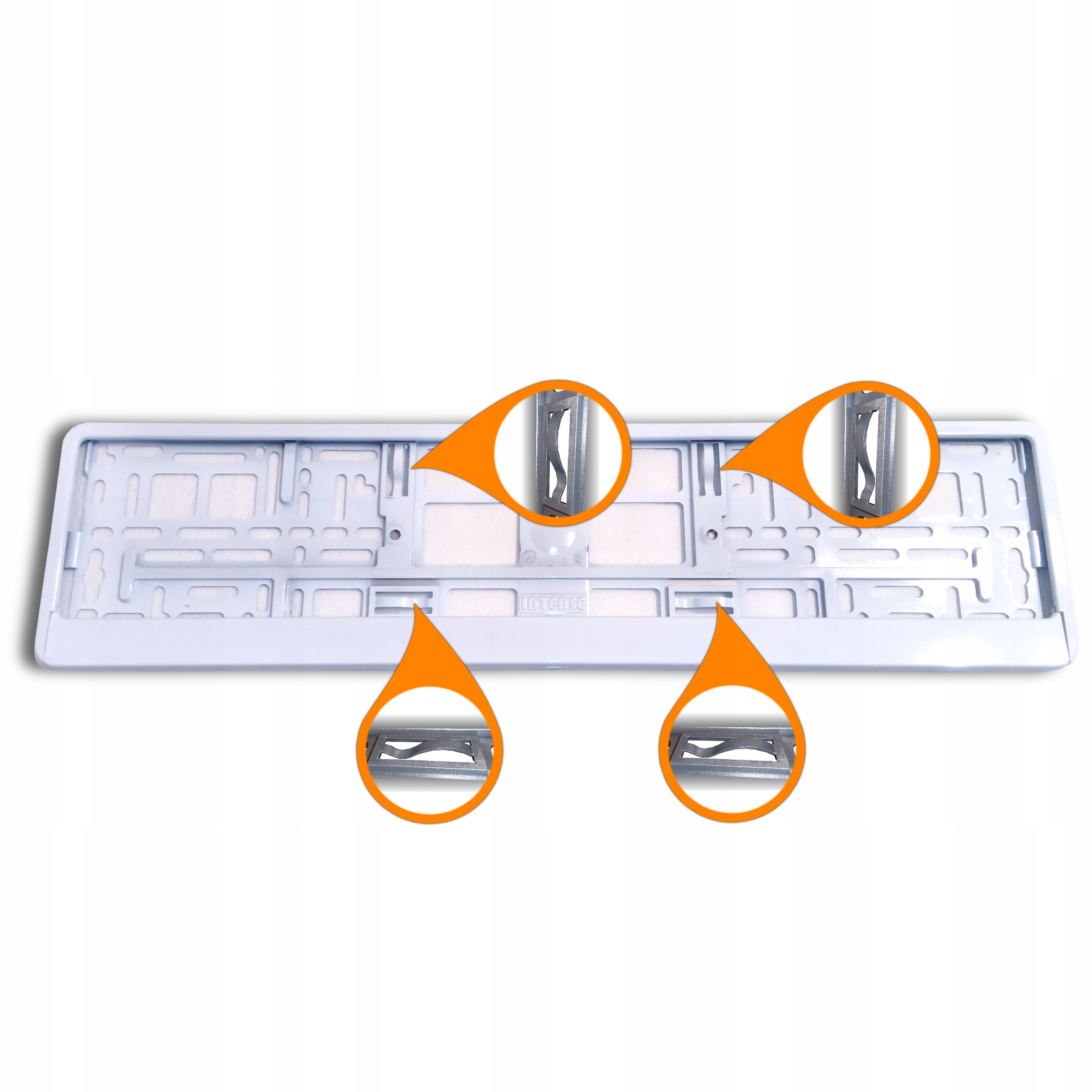 каркас не вимагає свердління додаткових отворів. Підходить для однорядних номерних знаків, які зараз використовуються в більшості країн Європейського Союзу (включаючи Польщу та Німеччину).