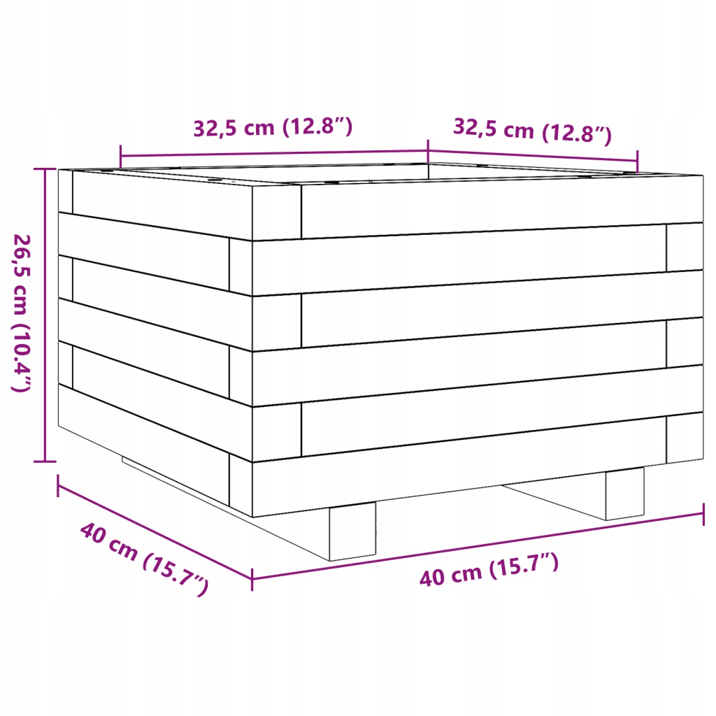 Білий горщик з суцільної сосни 40x40x26,5 см