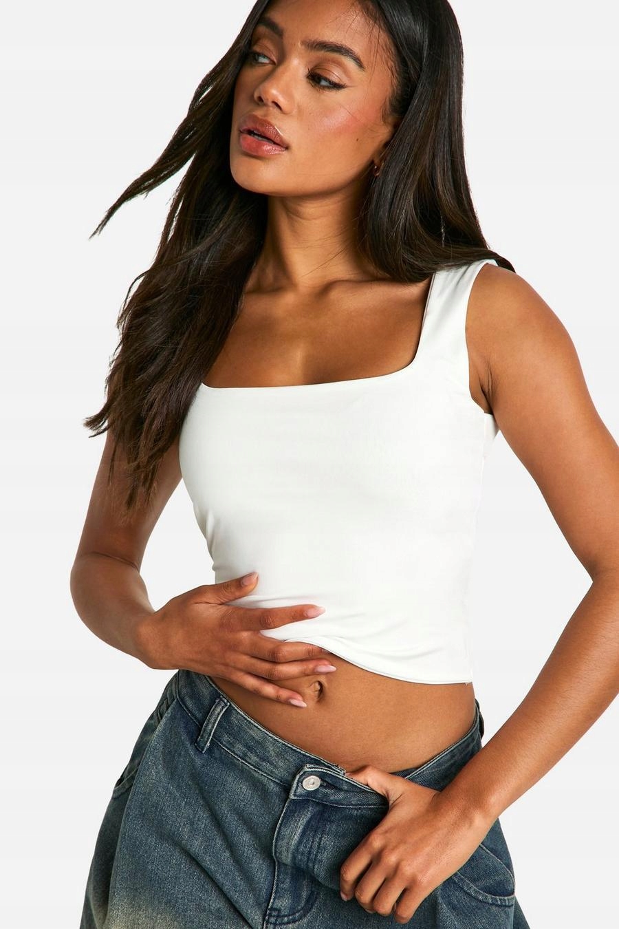 БІЛИЙ КЛАСИЧНИЙ ГЛАДКИЙ КОРОТКИЙ ТОП НА БРЕТЕЛЬКАХ BOOHOO 40