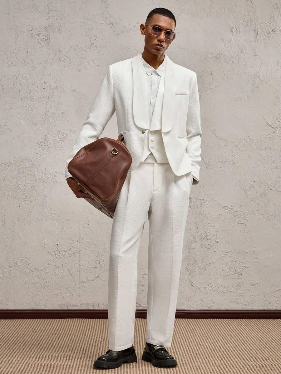 БІЛИЙ КОМПЛЕКТ БЛЕЙЗЕР З ДОВГИМ РУКАВОМ КОМІР ДОВГІ ШИРОКІ ШТАНИ SHEIN M