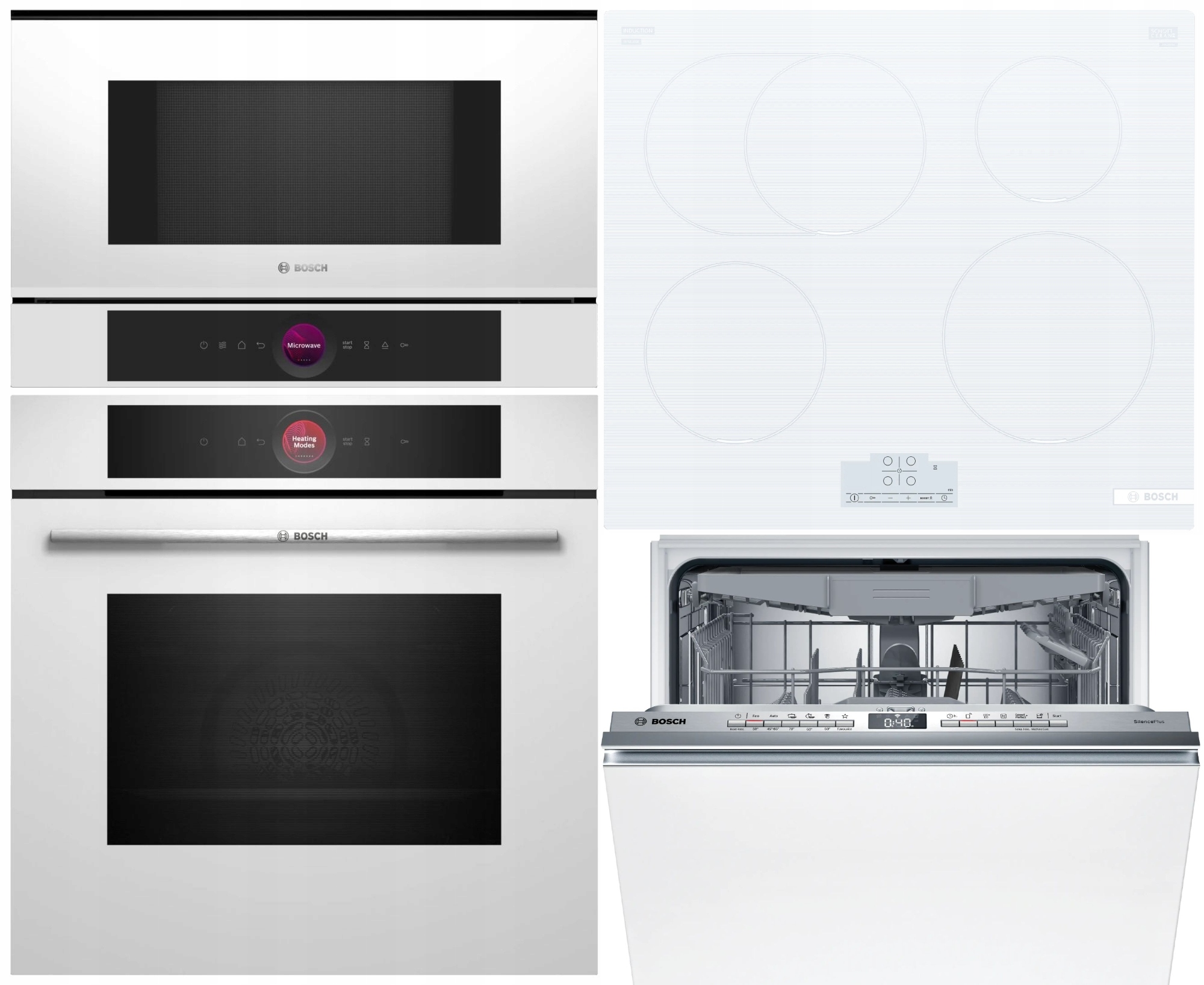 Білий комплект BOSCH 4 предмети: духовка + мікрохвильова піч + індукційна плита + посудомийна машина