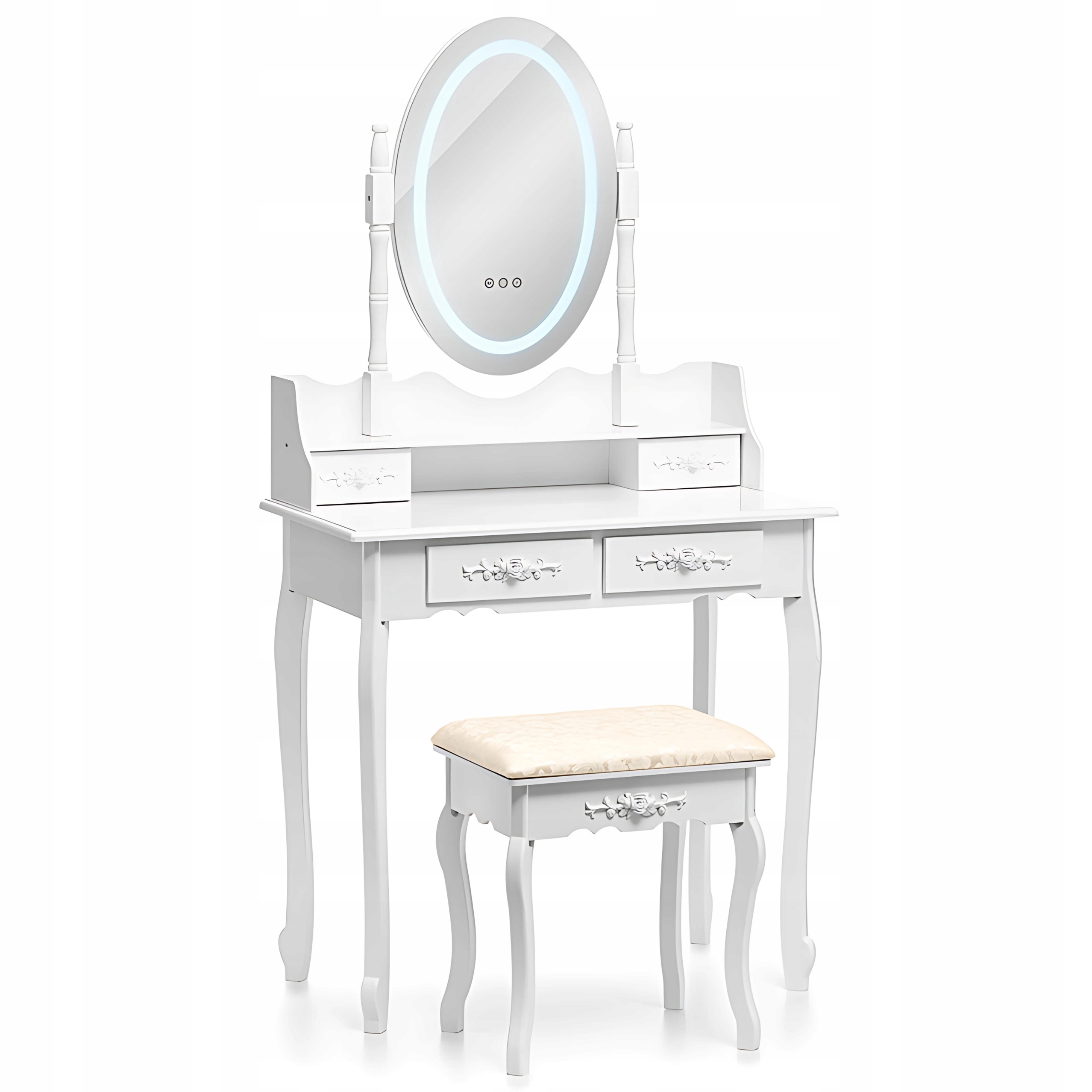 Заказывая «БІЛИЙ СТИЛЬНИЙ КОСМЕТИЧНИЙ СТОЛИК З ПІДСВІЧУВАННЯМ LED ДЗЕРКАЛО + ТАБУРЕТ» данное изделие из «Туалетные столики» вы можете быть уверены, что после оформления заказа, доставки в Украину, вы получите именно то, что заказывали, в оговоренные сроки и европейского качества.