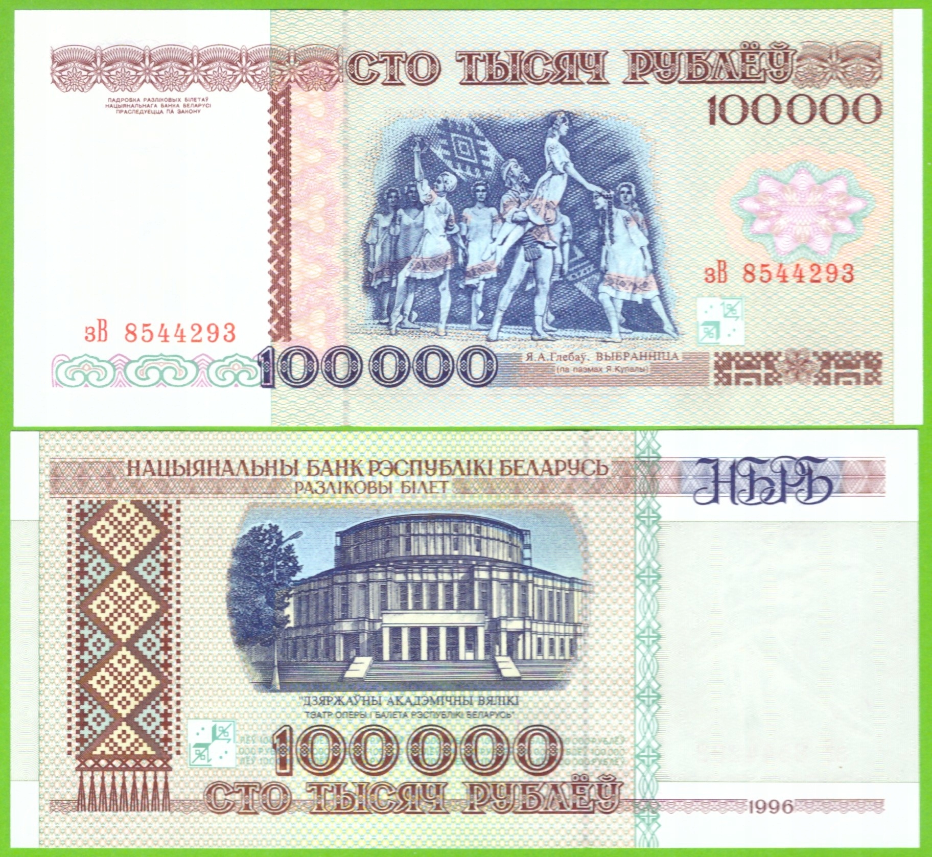 БІЛОРУСЬ 100000 РУБЛІВ 1996 NBRB P-15a UNC
