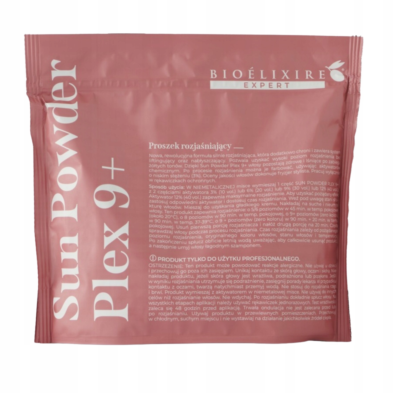 Нова, революційна, сильно освітлююча формула, яка додатково захищає та містить систему підтяжки та полірування. Дозволяє досягти високого рівня освітлення без жовтих тонів. Завдяки Sun Powder Plex 9+ ваше волосся залишається здоровим і блискучим після хімічної обробки. Після процесу освітлення їх можна фарбувати за допомогою активаторів низької концентрації (3%). Якість зачіски оцінюють перукар і стиліст. Працювати тільки в захисних рукавичках.