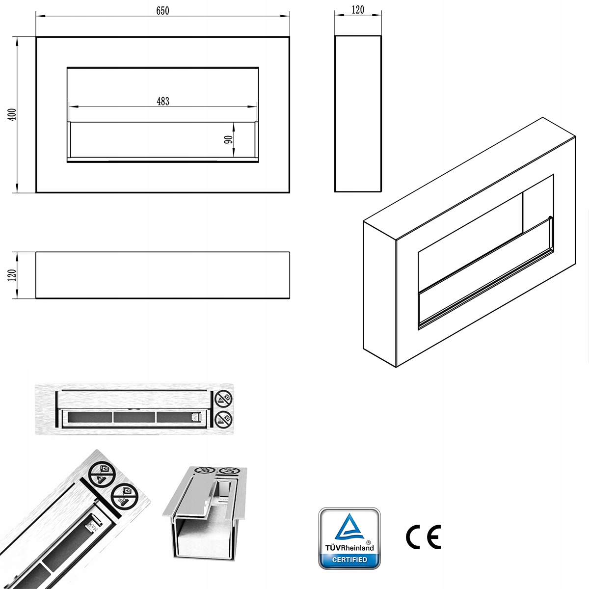 простий монтаж і естетичний вигляд - отвори для підвішування знаходяться ззаду, а повні сторони біо - камін надає естетичний вигляд з усіх боків;