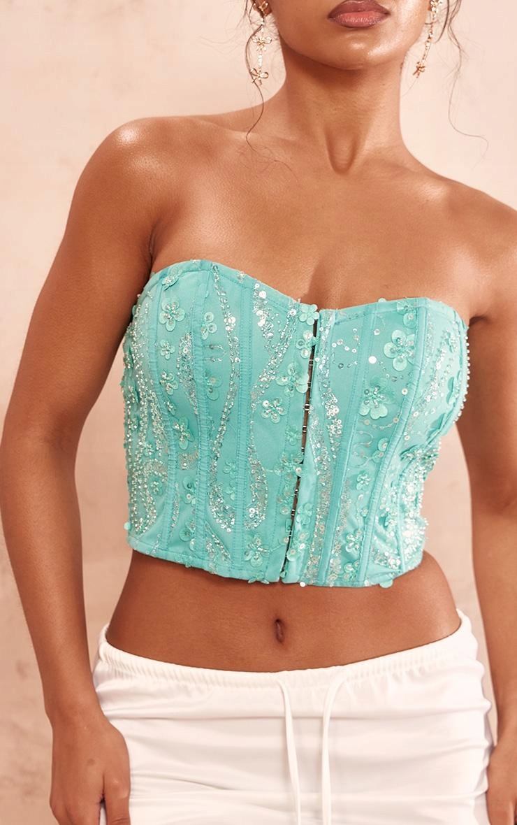 БІРЮЗОВИЙ КЛАСИЧНИЙ КОРСЕТ ДЕКОРАТИВНІ БЛИСКІТКИ КВІТИ PRETTYLITTLETHING 34