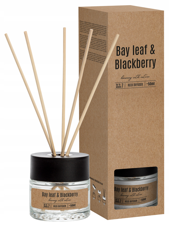 Дифузор аромату ЛАВРОВИЙ ЛИСТ І ОЖИНА ідеально доповнить свічку з дерев’яним гнотом sn81-325. Елегантний стакан ємністю 50 мл, екологічна упаковка та ротангові палички, занурені в ароматну олію, – пропозиція для людей, які цінують сучасність. Дифузор з інтенсивним ароматом ожини та лаврового листа зробить вас ближчими до природи у вашому домі. Виділяє аромат протягом 7 тижнів. Наповнює нутрощі ніжним ароматом дифузора.
