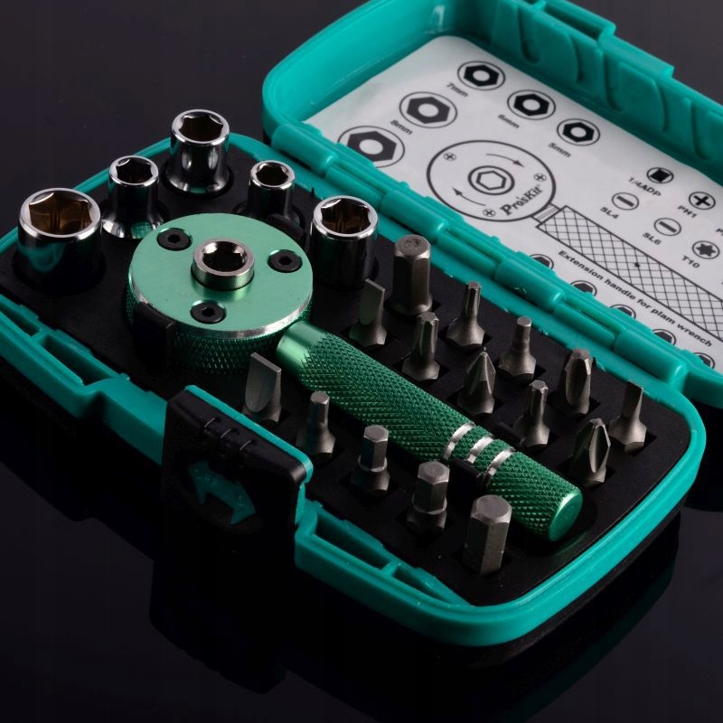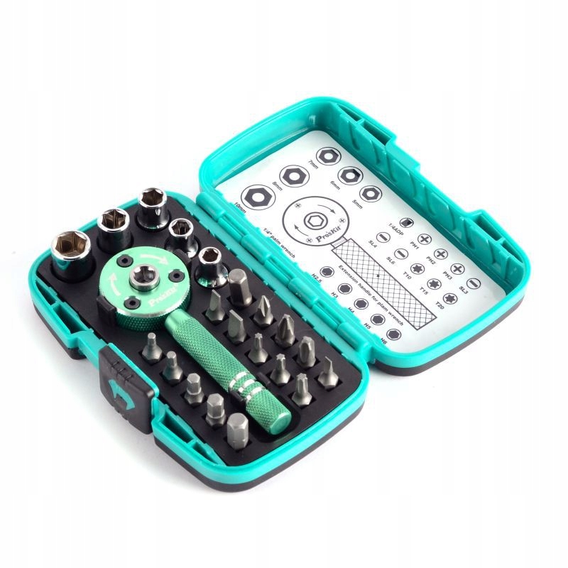 Набір бітів і розеток з тріскачкою Proskit. Ідеально підходить для обслуговування електроніки: ноутбуків, смартфонів, планшетів тощо.