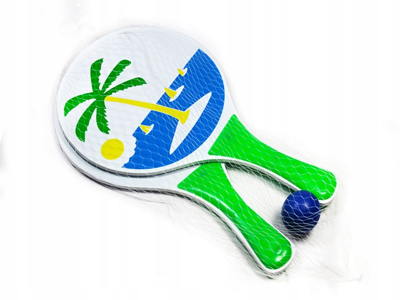 Виріб складається з 2 лопатей із твердого матеріалу та гумового м’яча (діаметр: 4 см).