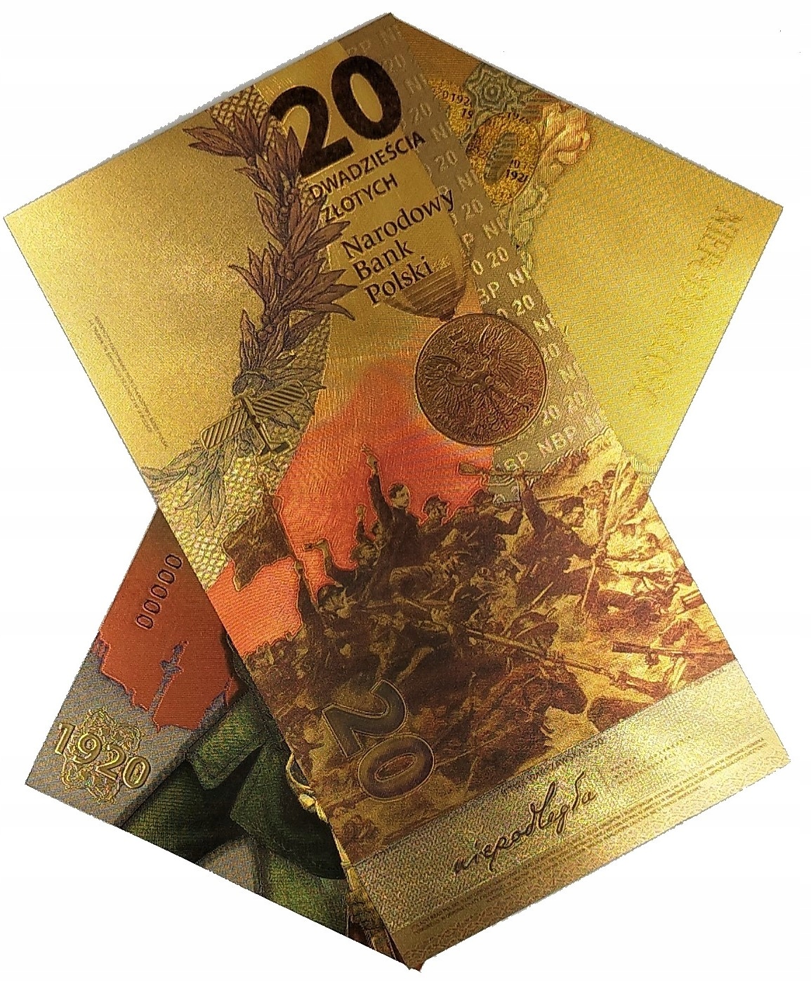 ПОЗОЛОЧЕНА БАНКНОТА НОМІНАЛОМ 20 ЗЛОТИЙ БИТВА ПІД ВАРШАВОЮ
