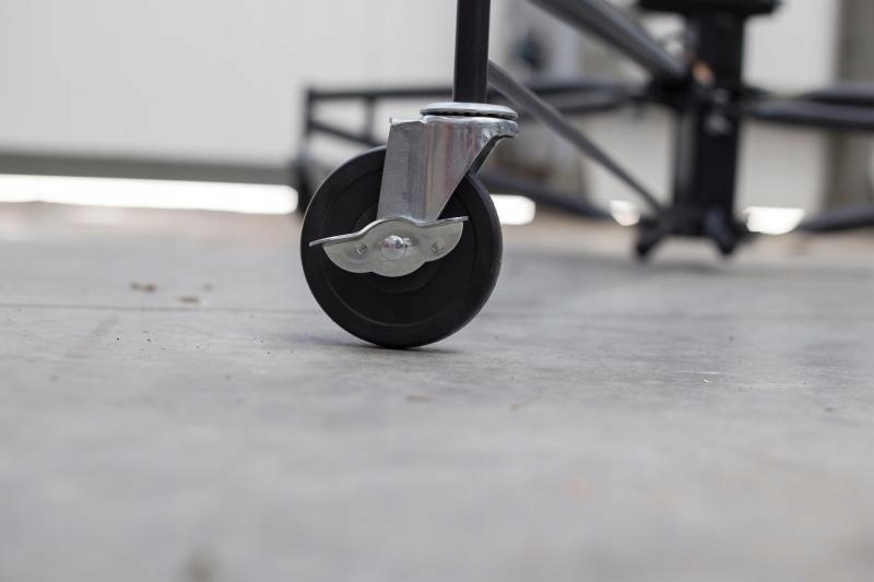 Трилапакова конструкція з фіксованими колесами забезпечує стабільність і мобільність. Крім того, він оснащений додатковими опорами, які запобігають ковзанню підйомника по підлозі.