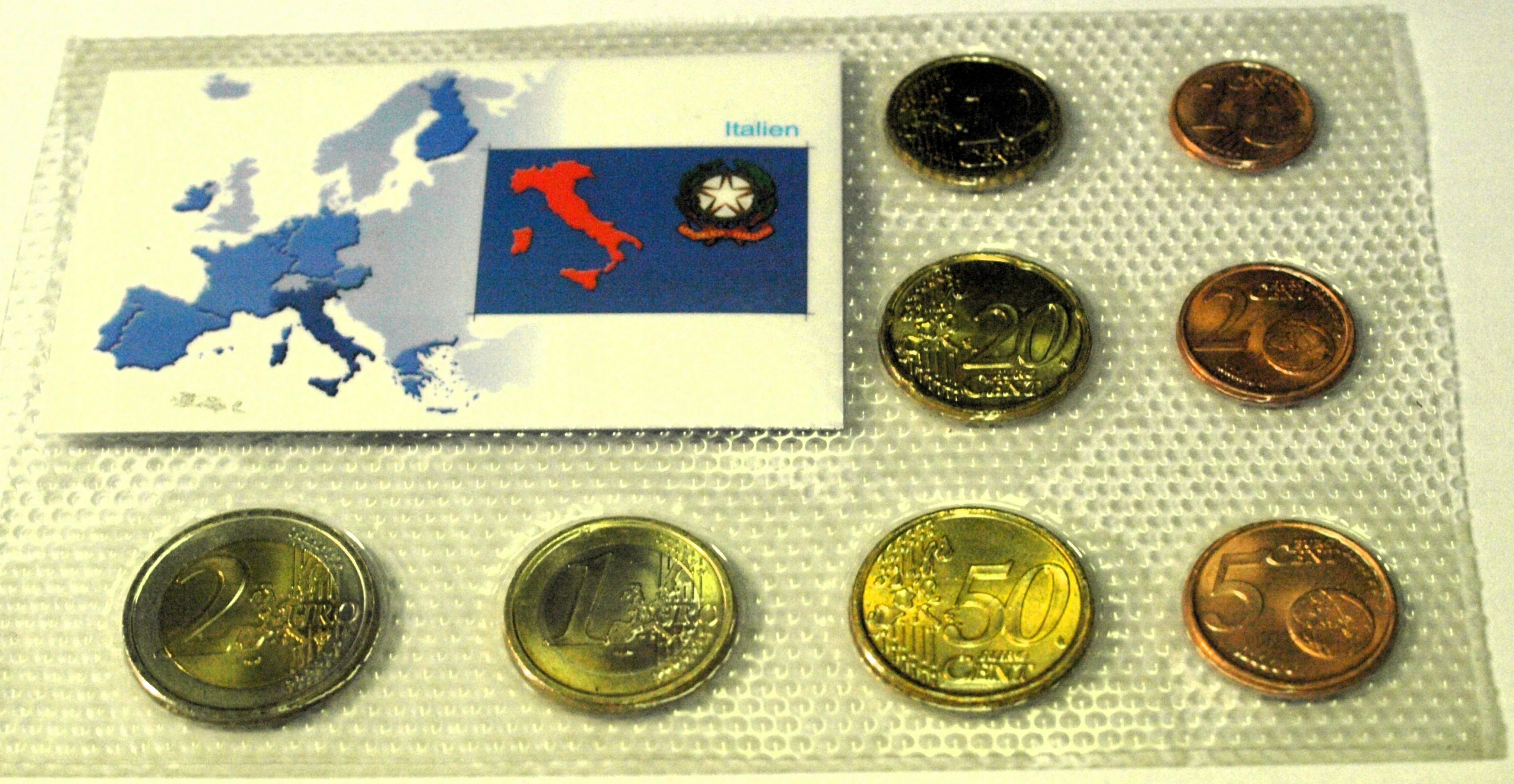 Блістерний набір монет Італія номіналом 8 євроцентів 2002-2004 років