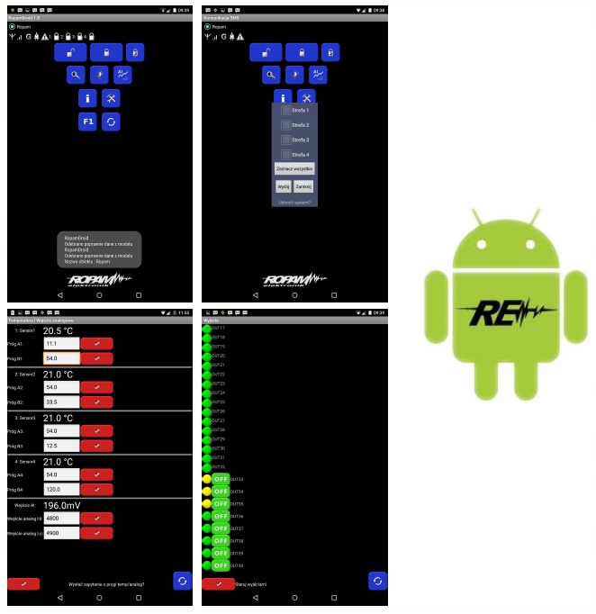 - RopamDroid (Android версії 2.1 ÷ 6) для керування через SMS