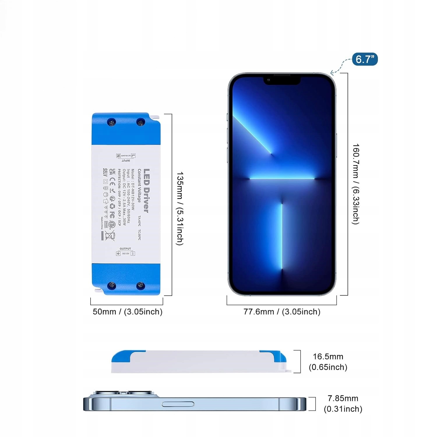 ✔️Постійна напруга 12 В постійного струму - забезпечує надійне живлення світлодіодних пристроїв. Максимальна потужність 30 Вт (2,5 А), без мінімального навантаження.
