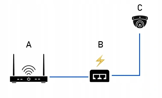 Схема підключення камери до Інтернету та живлення через джерело живлення PoE.