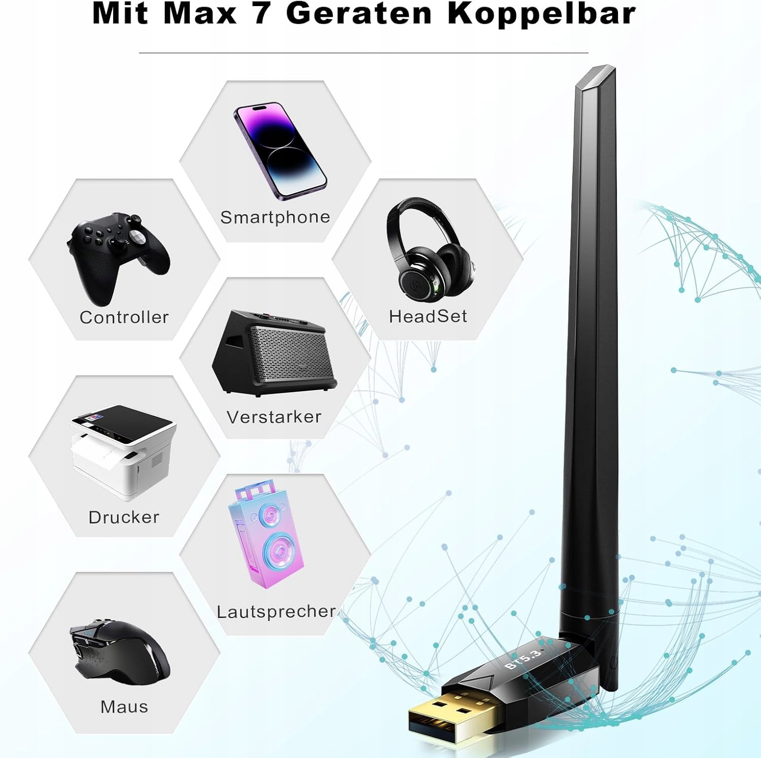 Адаптер Bluetooth 5.3 USB-A 150 M Діапазон 3 Мбіт/с Windows 11/10/8.1/7