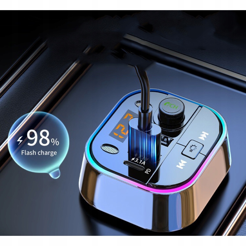 Трансмітер оснащений RGB-підсвічуванням, завдяки якому ви додасте сучасну атмосферу салону вашого автомобіля.
