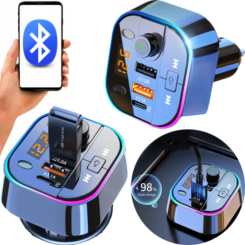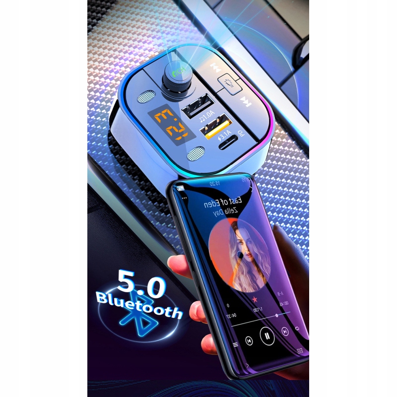 BLUETOOTH АУДІОПЕРЕДАВАЧ FM MP3 BT ШВИДКИЙ ЗАРЯДНИЙ ПРИСТРІЙ 3X USB QC 3.0 RGB З ВОЛЬТМЕТРОМ