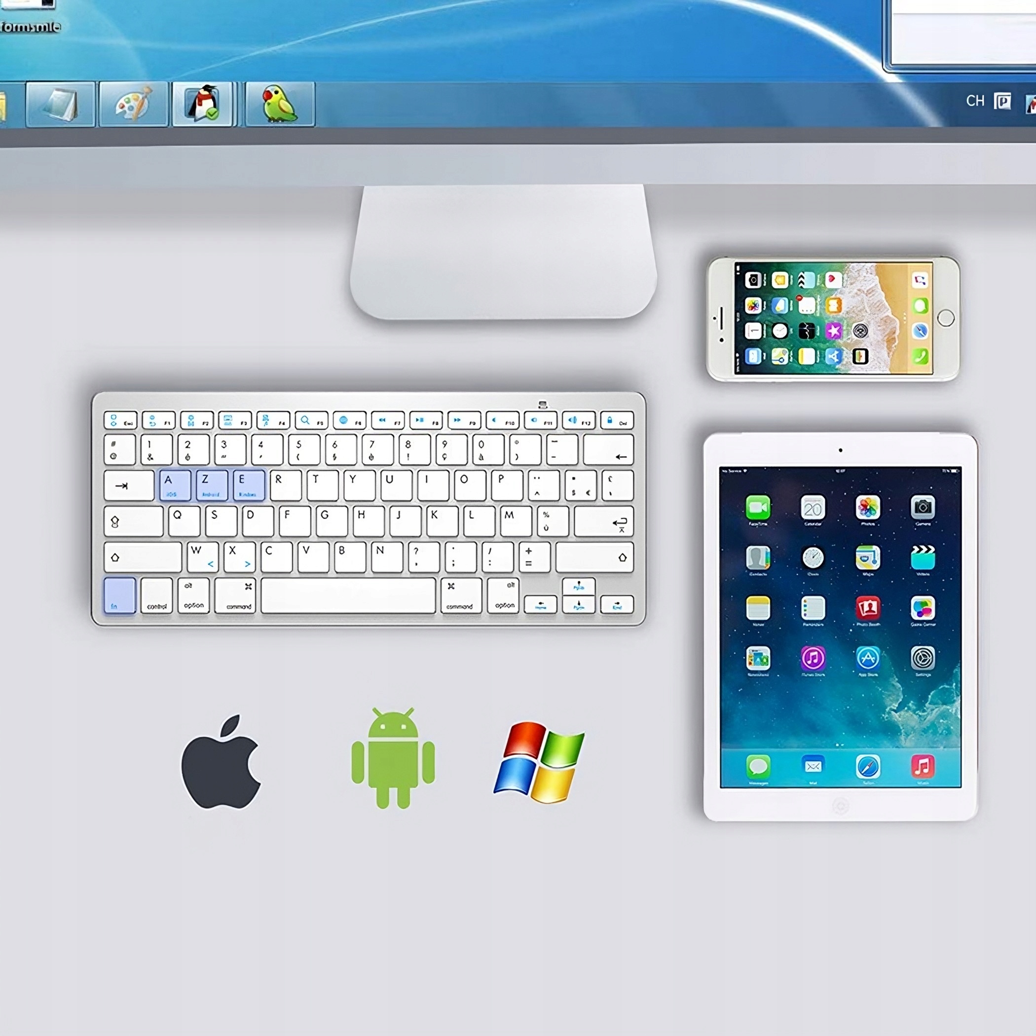 - Бездротова клавіатура Bluetooth у сріблясто-білі