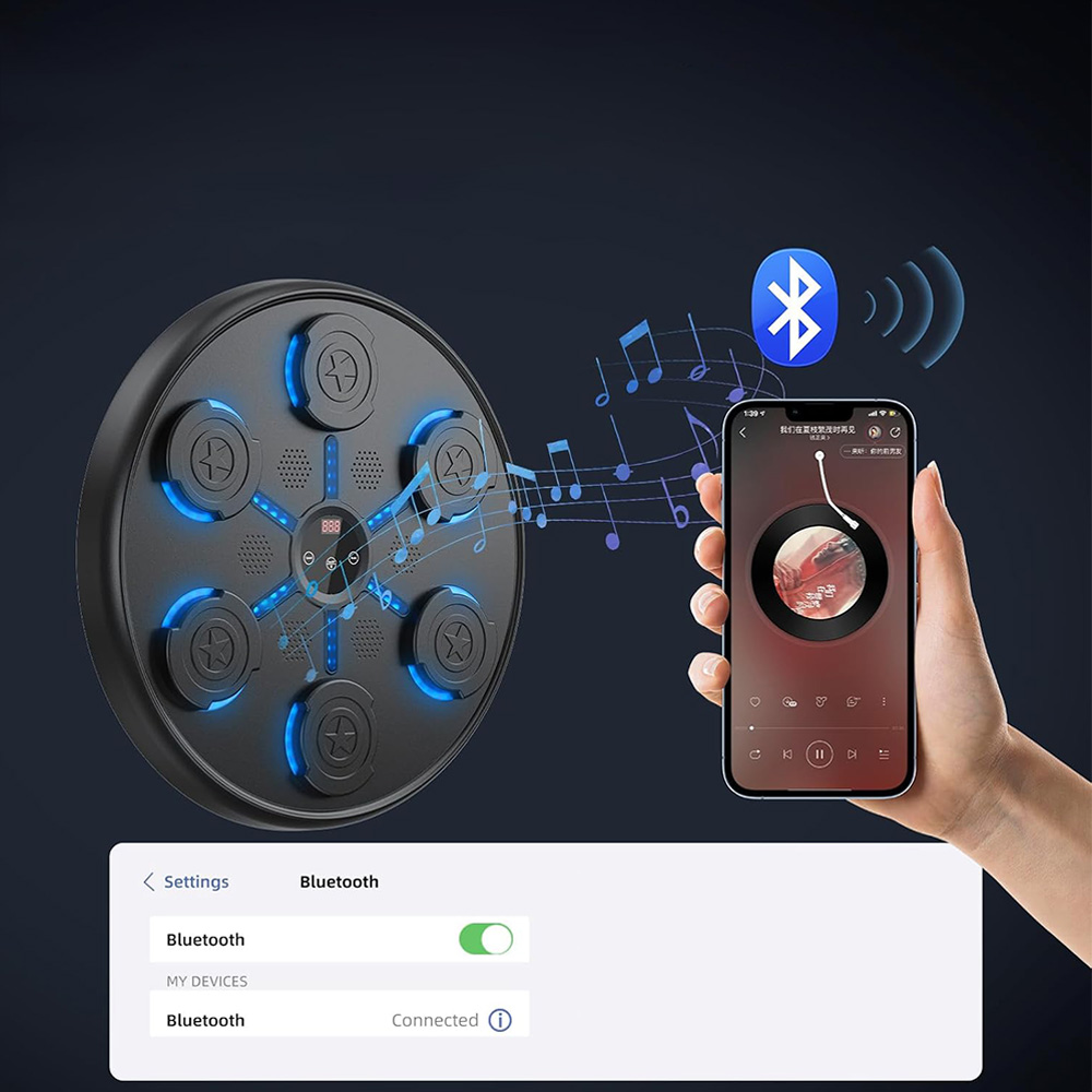 Цей інноваційний боксерський тренажер із музикою дозволяє синхронізувати ваші улюблені пісні через Bluetooth 5.0, забезпечуючи динамічні тренування. Удари в такт покращують вашу координацію та час реакції. Коли він не використовується як бокс-машина, він також може використовуватися як стильний домашній динамік, пропонуючи високоякісний звук для спокійного прослуховування. Цей пристрій ідеально підходить для тренувань під музичний супровід боксу або час від часу для прослуховування, цей пристрій поєднує розваги та фітнес в одній елегантній упаковці
