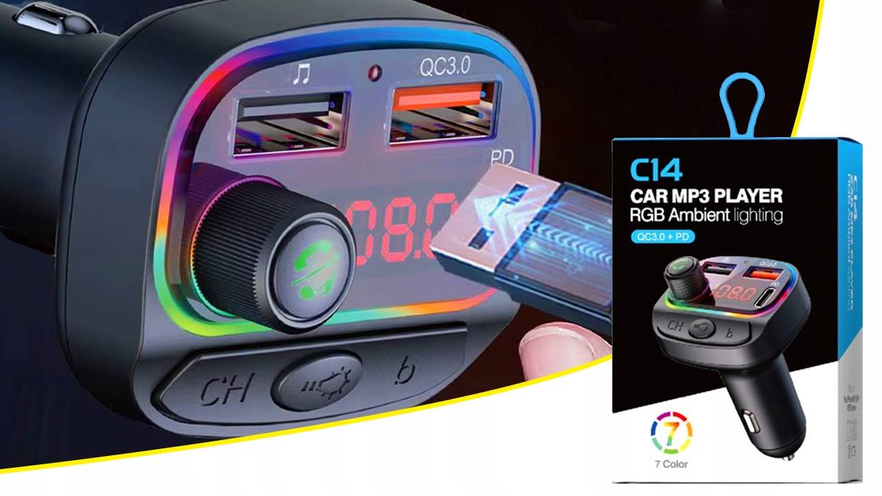 FM-трансмітер C14 — це універсальний пристрій, який дозволить вам насолоджуватися улюбленою музикою в автомобілі незалежно від джерела звуку. Ви можете відтворювати пісні без проводів через Bluetooth 5.0 або використовувати флешку. Вбудований мікрофон і підтримка голосових викликів роблять телефонні дзвінки комфортними та безпечними. Завдяки сучасній технології швидкої зарядки QC 3.0 і PD18W ваші мобільні пристрої завжди будуть готові до роботи.
