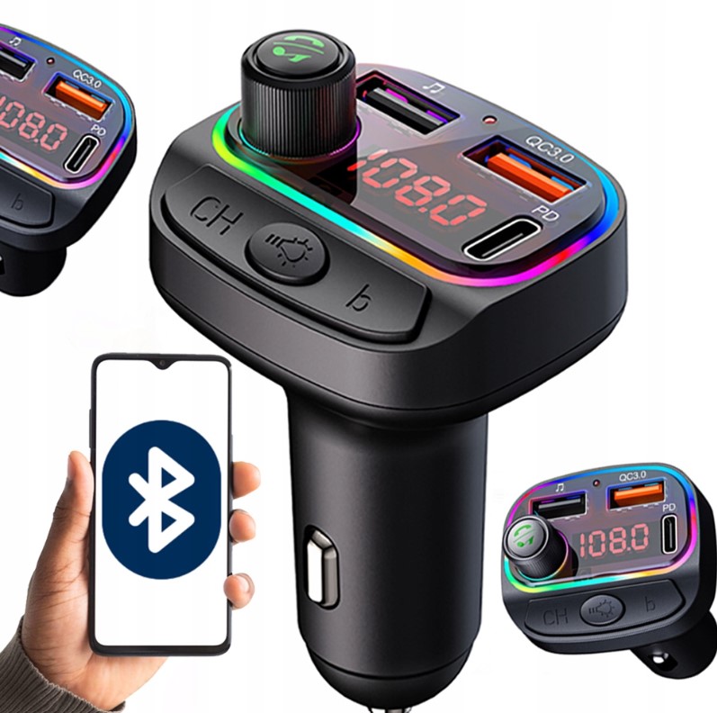 - Функції: передавач FM; USB -зарядний пристрій; Підтримка підключення; Світлодіодна панель