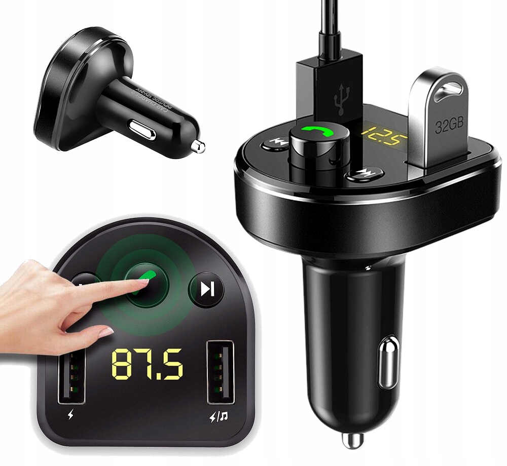 Автомобільний зарядний пристрій із FM-передавачем Bluetooth. Завдяки подвійному порту USB дозволяє заряджати два портативних пристрої одночасно. Дозволяє відтворювати музику, збережену на вашому смартфоні, через радіо.
