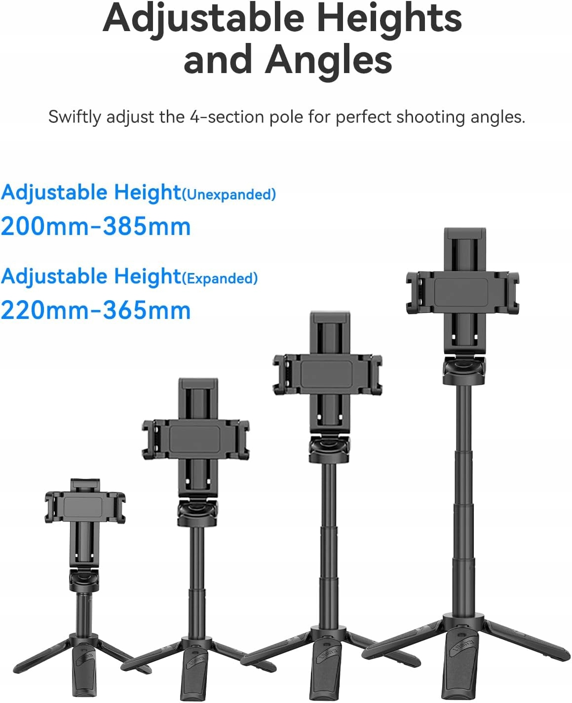 Діапазон подовження від 200 мм до 385 мм — ідеально підходить для селфі, відеоблогів і групових фото.