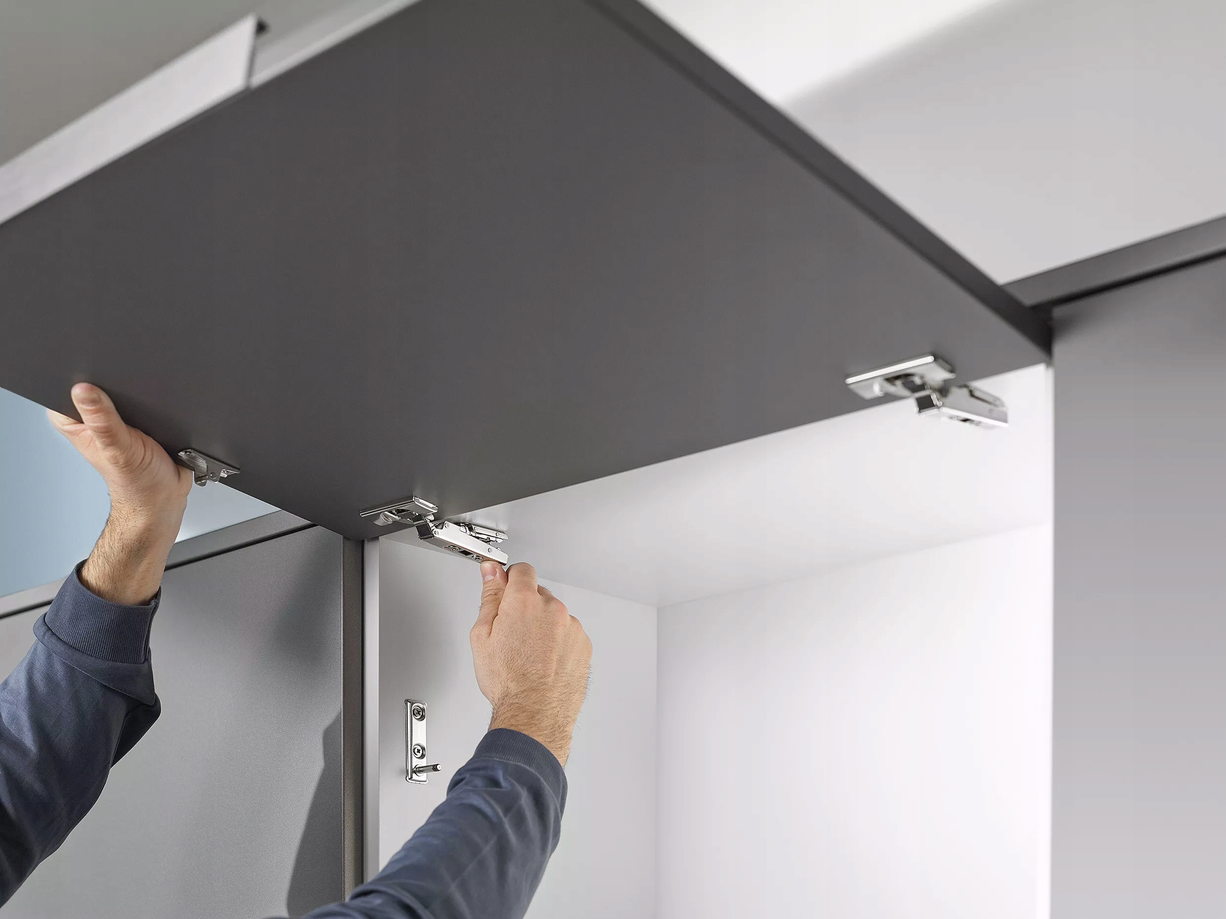 Aventos HK-XS - це передова система для підйому одиночних фронтів. Його можна використовувати особливо для низьких верхніх шаф і шаф з невеликою внутрішньою глибиною. Завдяки AVENTOS HK-XS ви можете плавно відкривати та закривати передню частину з невеликим зусиллям. Безступінчаста функція зупинки гарантує, що передня частина зупиняється на будь-якій висоті, а в поєднанні з петлями з кліпсою, blumotion закривається плавно та без непотрібне потріскування. Основним елементом приводу є суцільний набір пружин. Це забезпечує міцність і тривалий термін служби фурнітури. Приводи зручнорегулюватиспереду за допомогою регулювального гвинта відповідно до ваги передньої частини. Коли привід встановлений з обох сторін, також можна реалізувати більші, важчі фронти. Кут розкриття105°. Можлива установка обмежувача кута розкриття до 86°.