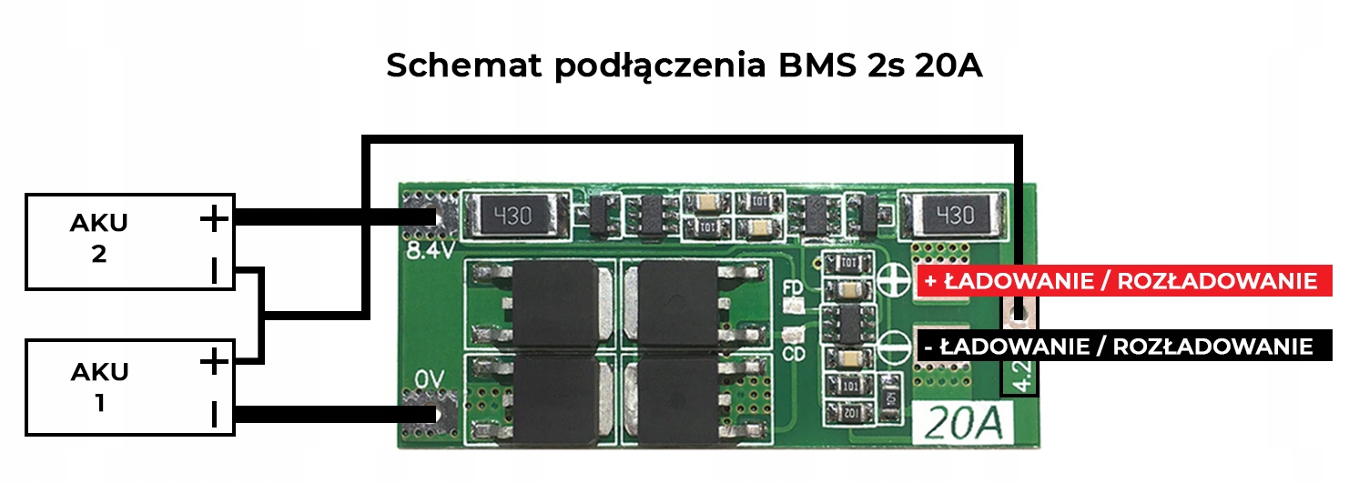 Захист BMS 2s 7,2 В - 7,4 В 20 A