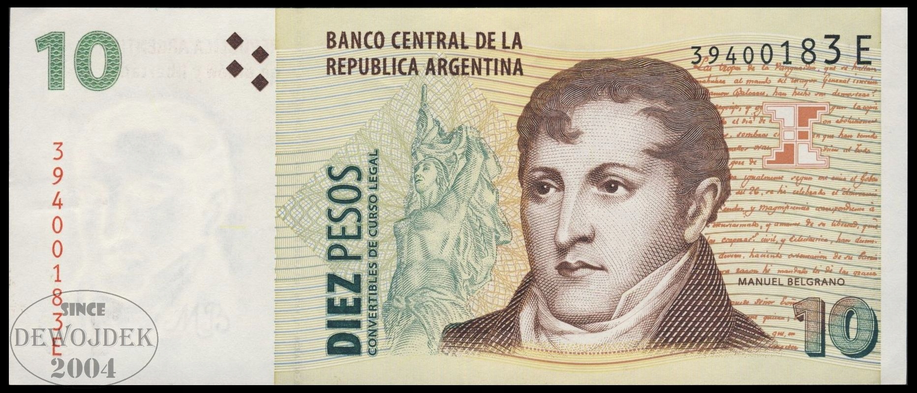 BNA - АРГЕНТИНА 10 песо 1998 E # P348 # ПИСЬМО # XF