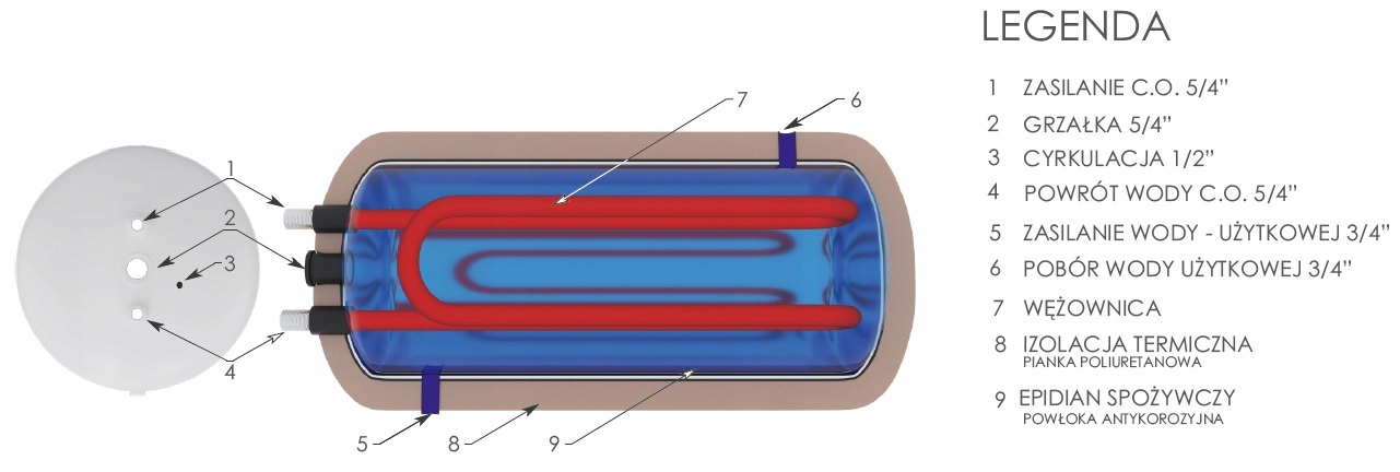 Горизонтальний теплообмінник з подвійним змійовиком (2xU) – це пристрій, призначений для нагріву води та підтримки її гарячою. Нагрівальним елементом даної моделі є змійовик.
