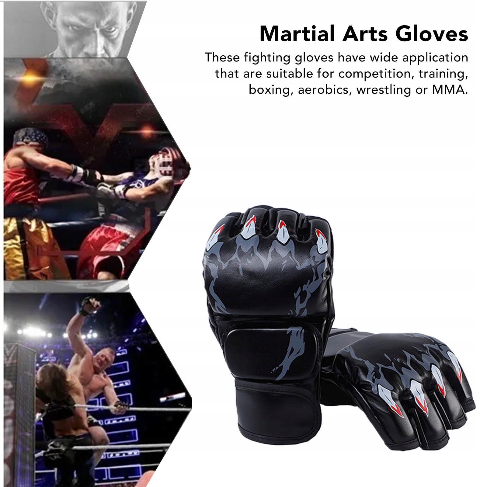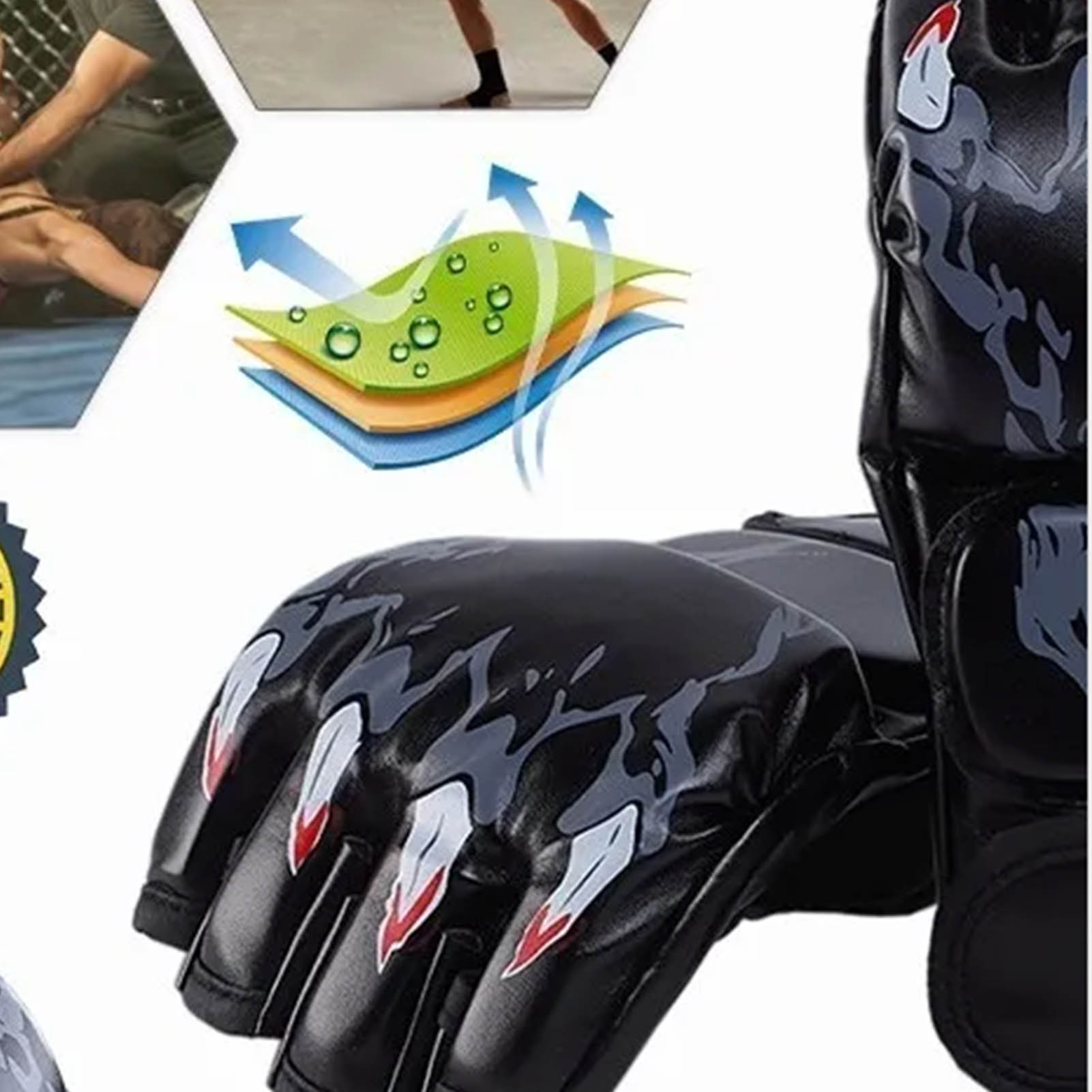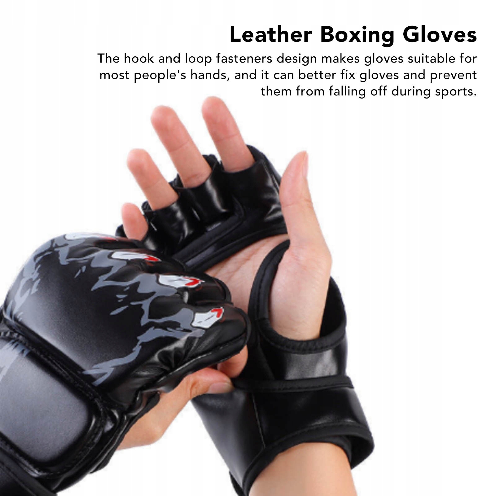 Бойові рукавички, чорні тигрові лапи, потовщена шкіра, латексна підкладка, боксерські рукавички для тренувань на половині пальців