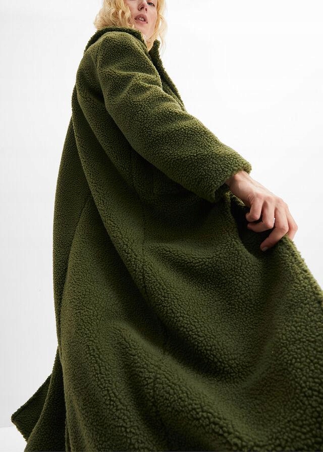 Bonprix płaszcz damski zielony klasyczny bez kaptura