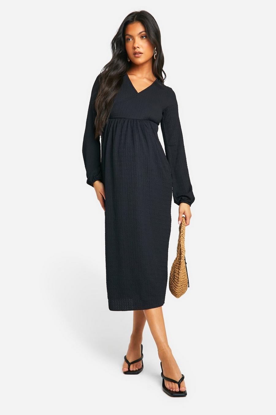 BOOHOO ЧОРНА СУКНЯ МІДІ З ДОВГИМ РУКАВОМ ТЕКСТУРА RO4 B16__M
